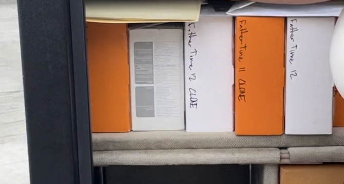 On August 8, 2024, TikTok user Locker Blocker (@LockerBlocker20) uploaded two videos—each roughly 2 to 3 minutes long—showing the contents of a storage vault reportedly linked to Ye’s personal belongings. The footage revealed clear storage bins, physical file folders, and a wide assortment of items spanning different eras of Ye’s career. The uploader moved quickly through the materials; below are several screenshots from the videos, along with links to the originals and their archived versions.