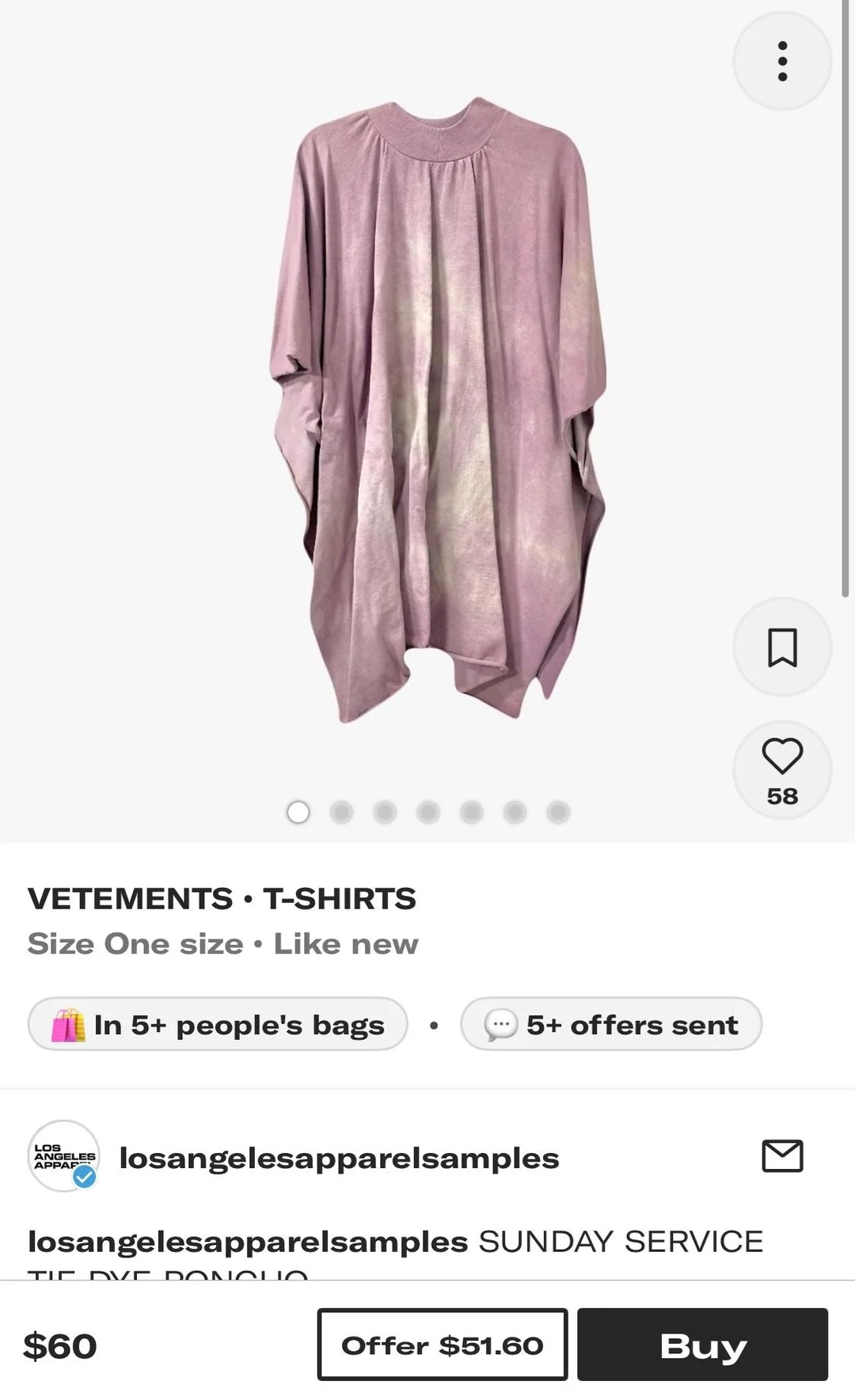 “yeah I’ve seen a couple posted on eBay and most I’ve seen the tags are cut off. Been wanting to cop one, but have held off. I ended up sending them a low offer and they accepted. Glad I caught this when they posted it. A ton of other stuff they’ve been posting gets scooped up so fast.”